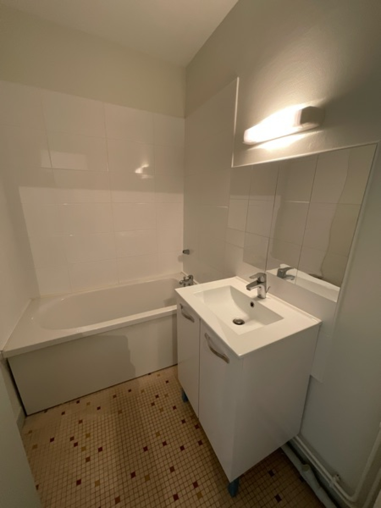 Dans un résidence avec local vélos, appartement de 39.55m², comprenant : une entrée, un séjour, une cuisine aménagée et équipée (four, plaque de cuisson, hotte et réfrigérateur), une chambre avec placard, une salle de bains et un WC séparé.